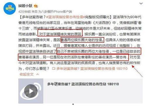 那天,阳光明媚,网友们正沉浸在美好的周末时光中。突然,卓伟的一条微博打破了这份宁静。他声称自己掌握了一段蓝洁莹的视频,内容相当劲爆。这条微博迅速引起了网友们的热议,大家纷纷猜测视频中的内容。
